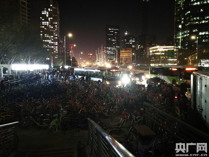 在北京八王墳東公交車站,即北京最大的共享單車“停車場”之一,賣力的吆喝里夾雜著共享單車的清脆鈴聲。每天晚高峰,上千輛共享單車從周邊涌來,依靠交警執(zhí)勤和調(diào)度車不斷清理,才能給開往通州的公交車留一條“出路”。用戶劉先生告訴記者:“這車特別多,很多車就這樣堆著,沒人騎,騎之前還要擦一下!