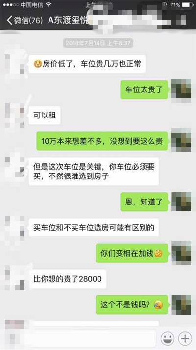 此外,開盤前銷售人員還要求小劉購買停車位,如果不買,即使全款購房也不一定能搶到。其他購房者也遭到了類似“警告”。
