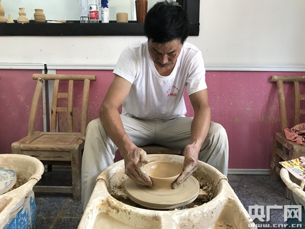 黃師傅展示陶藝?yán)呒夹g(shù)