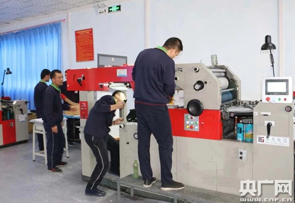 學員在教培中心印刷廠操作印刷機器。(央廣記者 吳卓勝 攝)