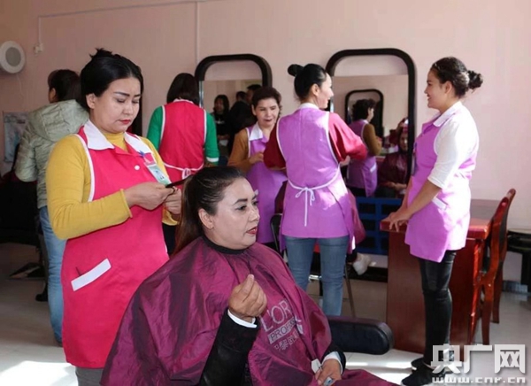 張明文告訴記者,于田縣正逐步搭建縣有龍頭企業(yè),鄉(xiāng)有規(guī)模企業(yè),村有衛(wèi)星工廠,戶有小作坊的四級框架,讓具備職業(yè)技能的學員們有活兒干,能掙錢。他說:“培訓學員在中心里面學到一些技術,他表現(xiàn)各方面合格了以后,我們安排到村里面去,讓他回家,在村里面的工廠去上班,讓他同樣把學到的一技之長用到我們的脫貧致富上去,讓他實現(xiàn)脫貧致富、穩(wěn)定發(fā)展、幸福生活!