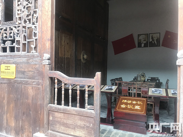 “里邊是一張八仙桌,當(dāng)年是有十位中央領(lǐng)導(dǎo)人。毛主席當(dāng)時(shí)所坐的位置就是八仙桌右面從外往里數(shù)的第一個(gè)板凳!焙飯(chǎng)會(huì)議會(huì)址解說(shuō)員朱世琪介紹。