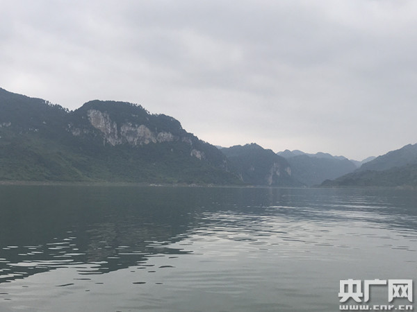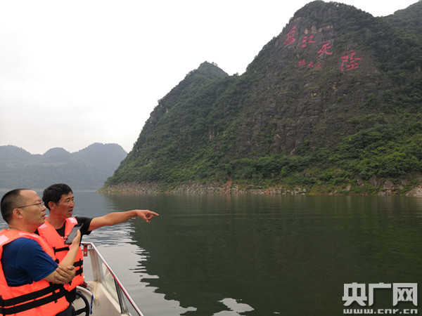 烏江江界河,對(duì)面白色山崖里的小道就是紅軍當(dāng)年最早下到江邊的老路。(中央廣播電視總臺(tái)央廣記者 陳屹 攝)