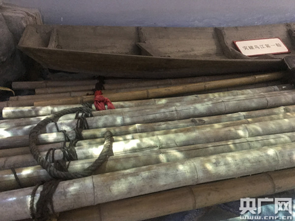 1935年1月,紅軍搶渡烏江時(shí)使用的雙層竹筏。(中央廣播電視總臺(tái)央廣記者 陳屹 攝)