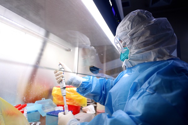 天壇醫(yī)院檢測(cè)人員正在進(jìn)行新冠病毒核酸檢測(cè)(央廣網(wǎng)發(fā) 北京天壇醫(yī)院供圖)