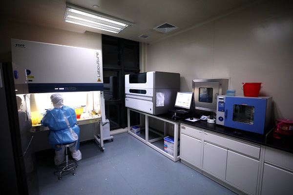 北京天壇醫(yī)院是新冠肺炎疫情發(fā)生以來,主管部門新批準(zhǔn)的新冠病毒核酸檢測(cè)機(jī)構(gòu)之一。天壇醫(yī)院實(shí)驗(yàn)診斷中心主任張國軍介紹,他們?cè)?月26日(正月初二)接到通知,準(zhǔn)備開展新冠病毒核酸檢測(cè)工作,隨后擬定工作流程,在現(xiàn)有的基因擴(kuò)增(PCR)實(shí)驗(yàn)室基礎(chǔ)上完善功能,比如為負(fù)壓房加裝壓力表,讓安全狀況更加直觀。張國軍說:“從標(biāo)本的采集、運(yùn)送、管理、檢驗(yàn),到性能的評(píng)估,再到最后結(jié)果的報(bào)告,我們用一周的時(shí)間基本上就完成了整個(gè)流程的梳理。我們?cè)跇堑览锩嬗旨友b了一些紫外燈和壓力表!