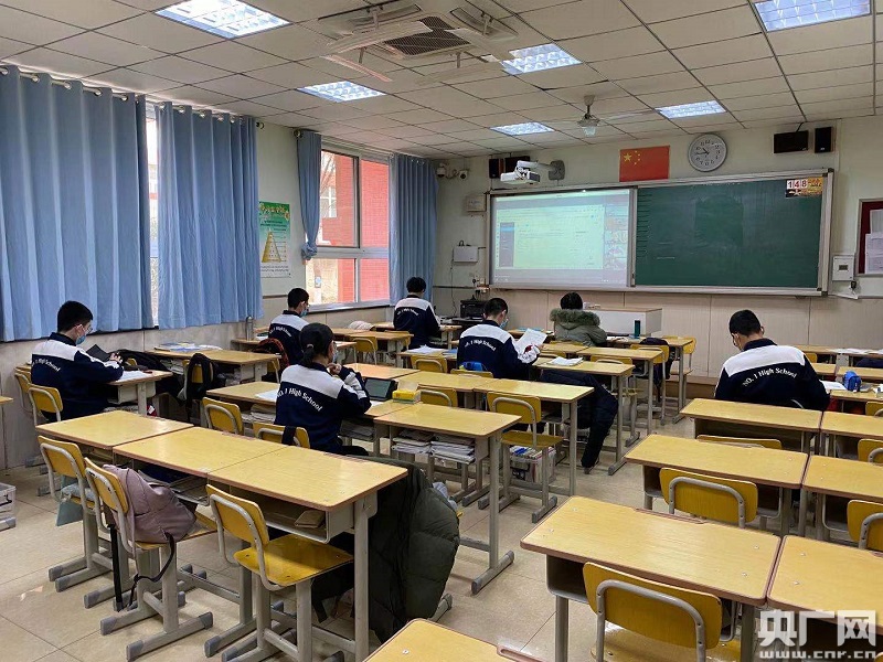 這次疫情將石家莊市一中的同學(xué)們分成了兩個(gè)部分,寄宿制學(xué)生繼續(xù)留在學(xué)校,實(shí)施封閉管理,而走讀的學(xué)生則回到家中,網(wǎng)上學(xué)習(xí)。不過,即便不在同一個(gè)教室,同學(xué)們依然共享同一個(gè)課堂。石家莊市第一中學(xué)校長(zhǎng)婁延果介紹:“學(xué)校從6日早上7點(diǎn)開始就組織同學(xué)們?cè)诰W(wǎng)上進(jìn)行自習(xí)、早讀,一個(gè)班被分成兩部分,每一個(gè)同學(xué),無論是在家里還是在教室,同屏同時(shí)段按照過去的課表正常上課。實(shí)際上等于實(shí)現(xiàn)了在不同的物理空間內(nèi),班里所有同學(xué)和老師之間相互在屏幕上都能看得到,而且能隨機(jī)交流。采用這樣的方式,我們也能最大限度營造這班同學(xué)還是在一起上課的氛圍!