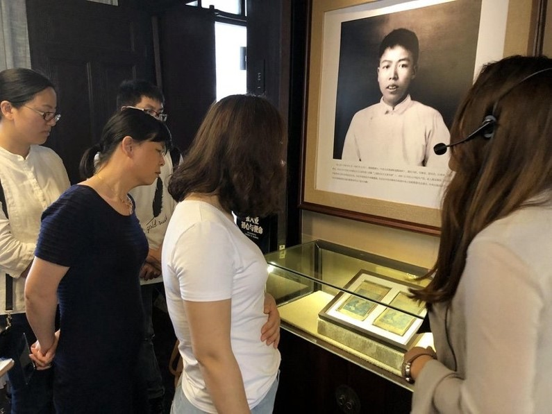 講解員給觀眾講述張人亞父子兩代守護《共產(chǎn)黨宣言》的故事