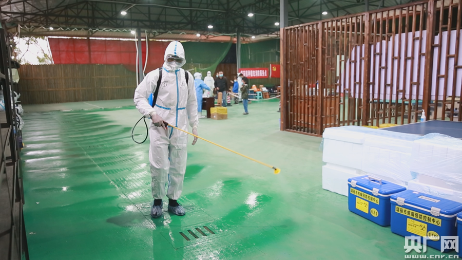 △對場地進行消殺(央廣網(wǎng)發(fā) 李勁松 攝)