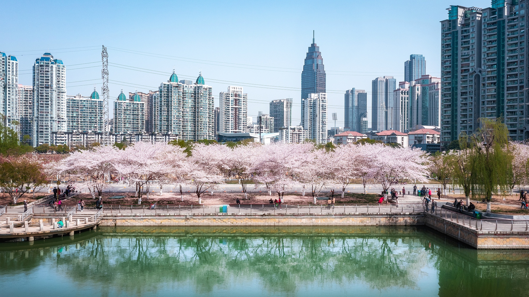 2021年3月24日,武漢,西北湖旁的櫻花花開正盛(圖片來源:CFP)