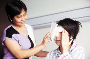 在天津醫(yī)科大學(xué)眼科中心的病房,記者見到了本月16日剛剛做完手術(shù)的劉靜環(huán)。她躺在病床上,右眼包裹著厚厚的紗布,盡管母親馬兆霞按照醫(yī)生的指示一直在用冰袋幫助女兒敷右眼部,但是她還是感到疼痛,左眼也被帶著有些腫。但她一直沒有喊疼,見有人進(jìn)病房,她立即讓母親扶自己坐起來。盡管眼部包著紗布,但仍然可以看出她是個(gè)清秀的姑娘,說起話來也斯文大方。