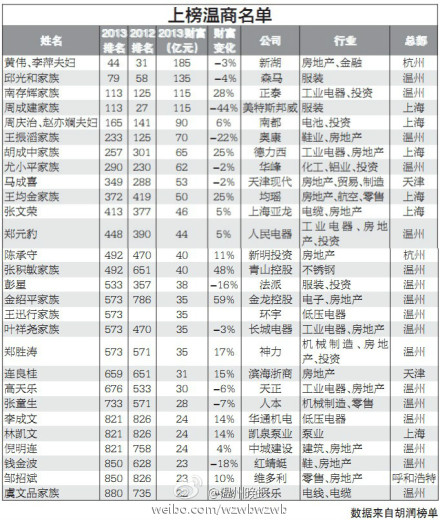 2013胡潤百富榜發(fā)布 上榜溫商態(tài)度冷淡質(zhì)疑數(shù)據(jù)來源