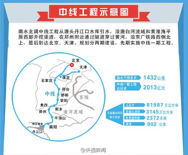 中線一期工程從大壩加高擴(kuò)容后的丹江口水庫引水,沿線開挖渠道直通北京,總長(zhǎng)1432公里,工程自2003年開工以來,經(jīng)過10多年的建設(shè)而成。