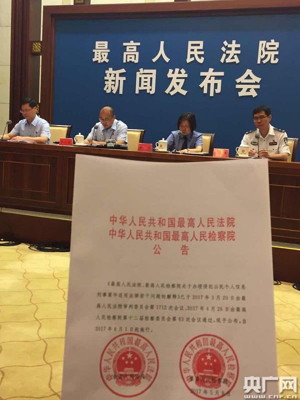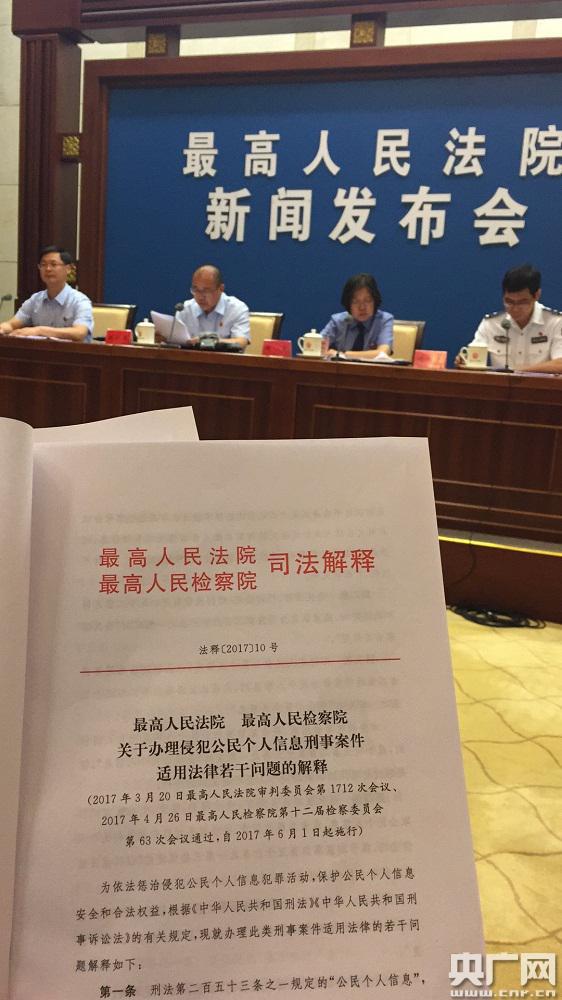 央廣網(wǎng)北京5月9日消息(記者孫瑩)據(jù)中國(guó)之聲《央廣新聞》報(bào)道,隨著信息化建設(shè)的推進(jìn),信息資源成為重要的生產(chǎn)要素和社會(huì)財(cái)富。與此同時(shí),個(gè)人信息泄露問題嚴(yán)重,個(gè)人信息安全成為一個(gè)全社會(huì)高度關(guān)注的問題。為保護(hù)公民個(gè)人信息,我國(guó)《刑法修正案(七)》增設(shè)了出售、非法提供公民個(gè)人信息罪和非法獲取公民個(gè)人信息罪,《刑法修正案(九)》又完善了相關(guān)規(guī)定,今天,《最高人民法院、最高人民檢察院關(guān)于辦理侵犯公民個(gè)人信息刑事案件適用法律若干問題的解釋》發(fā)布。