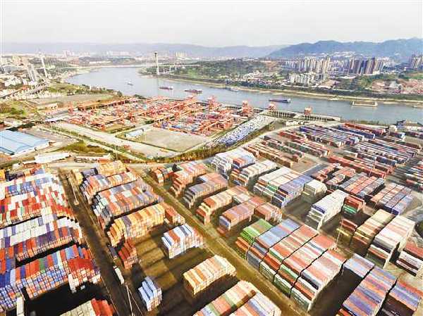 圖為重慶自貿(mào)試驗(yàn)區(qū)兩路寸灘保稅港區(qū)集裝箱堆場(chǎng)。(重慶日?qǐng)?bào)資料圖片)