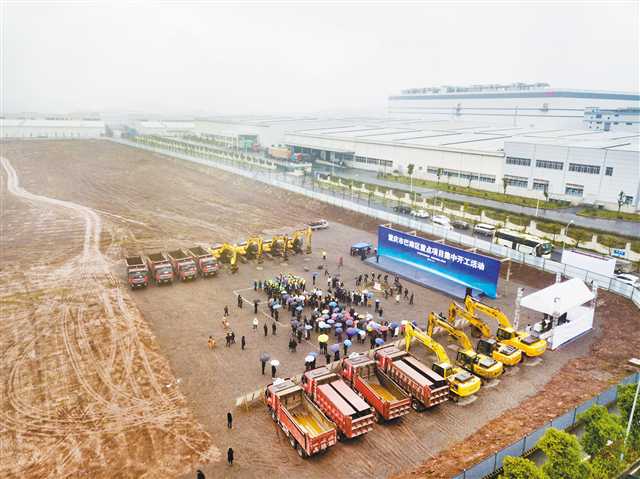 1月9日,巴南經(jīng)濟(jì)園區(qū)界石組團(tuán),巴南區(qū)重點(diǎn)項(xiàng)目集中開(kāi)工現(xiàn)場(chǎng)。記者 謝智強(qiáng) 實(shí)習(xí)生 林豪 攝