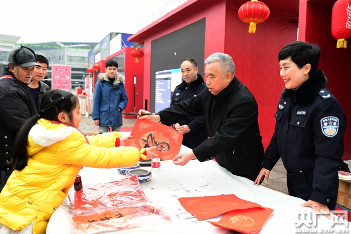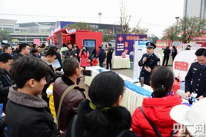 央廣網(wǎng)重慶1月31日消息(記者陳鵬)還有幾天就要過年了,為給旅客朋友們保駕護航,30日上午,重慶火車北站南廣場“夢想驛站”攜重慶警方,結合春運特點,通過小知識有獎問答、現(xiàn)場視頻宣講、發(fā)放宣傳資料等方式,開展煙花爆竹禁放宣傳,為往來旅客送上防范電信詐騙、非法集資、毒品犯罪、盜、扒、騙以及交通安全防范常識。同時,公安文聯(lián)的藝術家們還在現(xiàn)場作畫、寫春聯(lián)和“!弊,為大家送上新春祝福。