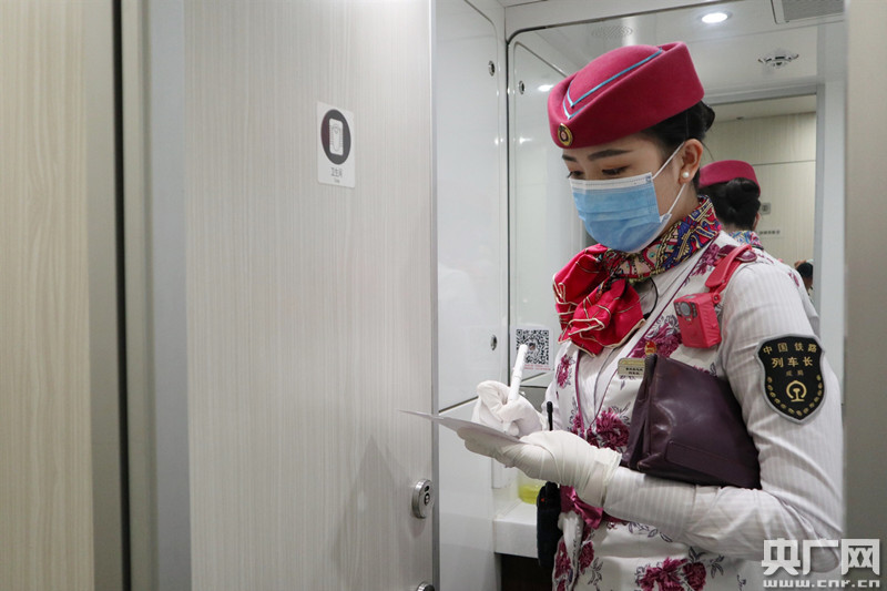 防疫工作是重中之重,列車重點(diǎn)部位消毒情況要一一記錄簽字確認(rèn)(央廣網(wǎng)發(fā) 通訊員鐘潔 攝)