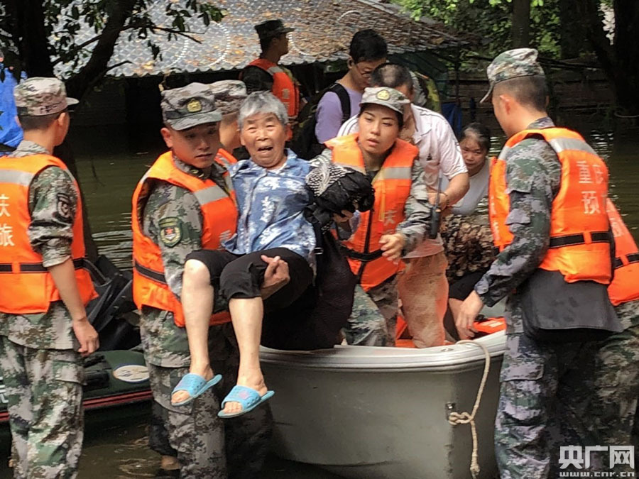 重慶預(yù)旅官兵們轉(zhuǎn)移龍洲灣百節(jié)社區(qū)被困群眾(央廣網(wǎng)發(fā) 通訊員供圖)