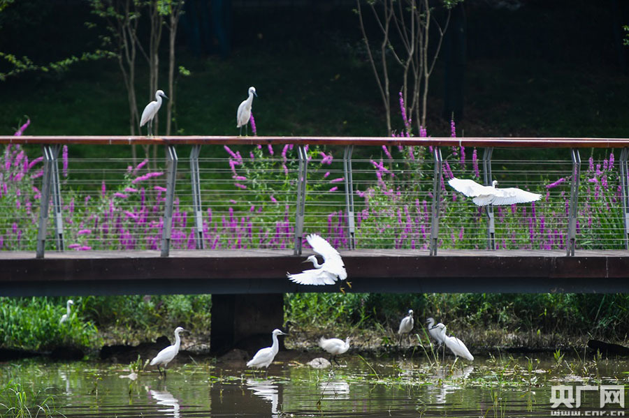 苦竹溪生態(tài)變美引來(lái)大量白鷺(央廣網(wǎng)發(fā) 郭旭 攝)