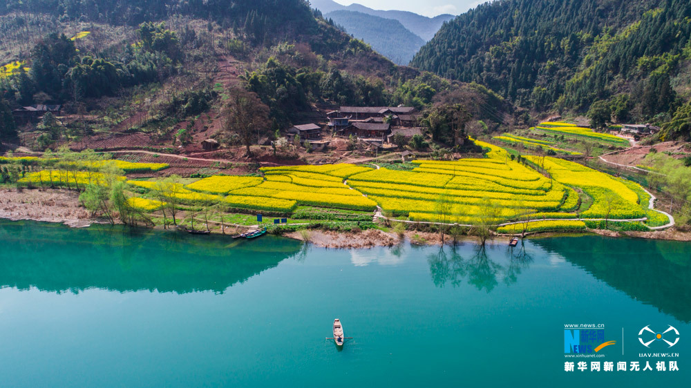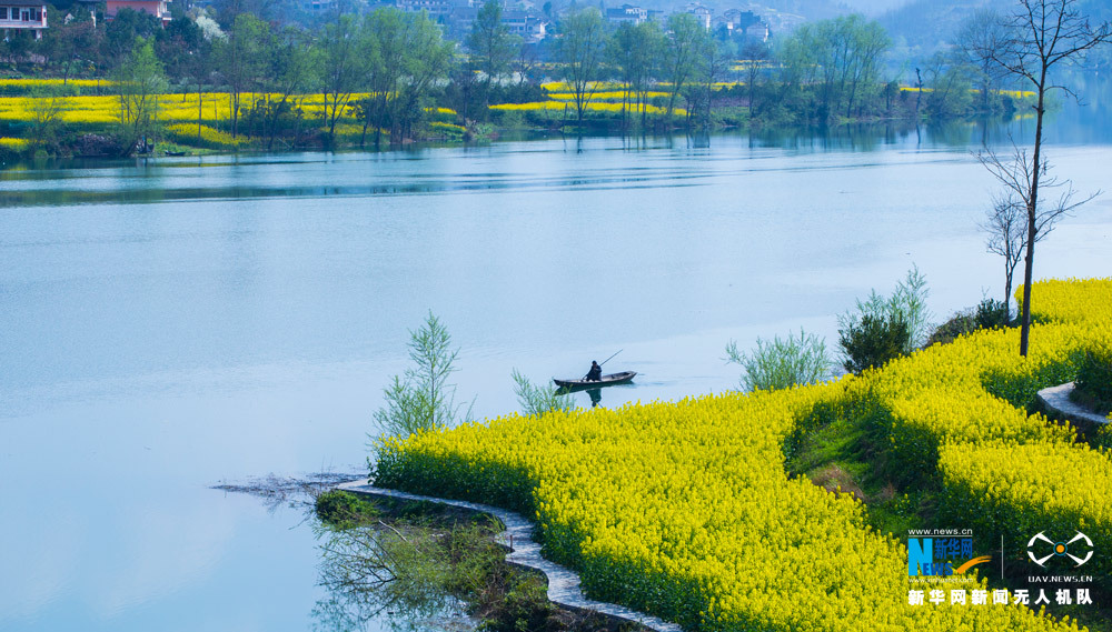 陽春三月,春水初生,花海漸盛。在重慶市黔江區(qū)阿蓬江畔,油菜花海沿著江岸蔓延開來,正是半江春色半江水。圖為無人機(jī)航拍重慶阿蓬江春色,詩情畫意濃。新華網(wǎng)發(fā)(王江龍 攝) -