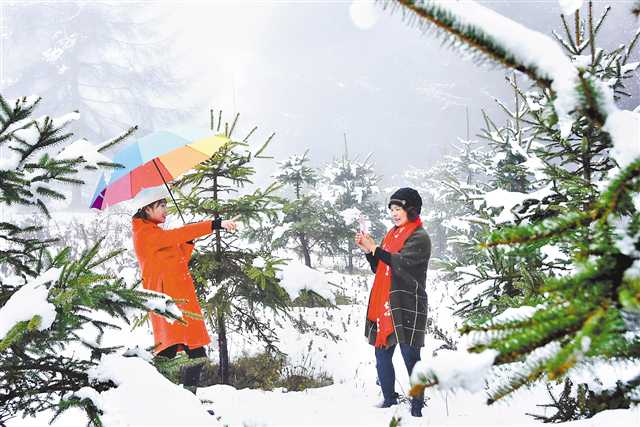 11月7日,市民在巫山縣梨子坪國家森林公園賞雪。當(dāng)日是二十四節(jié)氣的立冬。受冷空氣影響,巫山縣海拔1200米以上地區(qū)迎來今冬首場降雪。通訊員 王忠虎 攝