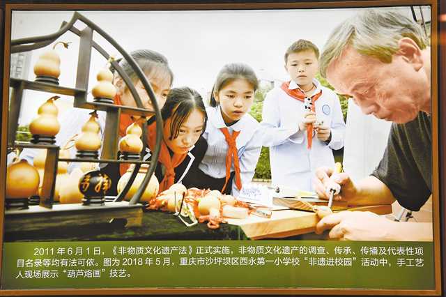 一位頭發(fā)花白的長(zhǎng)者低著頭創(chuàng)作“葫蘆烙畫”,吸引了多名學(xué)生圍觀……在國(guó)家博物館“偉大的變革——慶祝改革開放40周年大型展覽”第四展區(qū)第三單元,一張“非遺進(jìn)校園”的照片引人注目。據(jù)了解,圖中的長(zhǎng)者正是重慶市級(jí)非遺項(xiàng)目“葫蘆烙畫”的代表性傳承人張居常。
