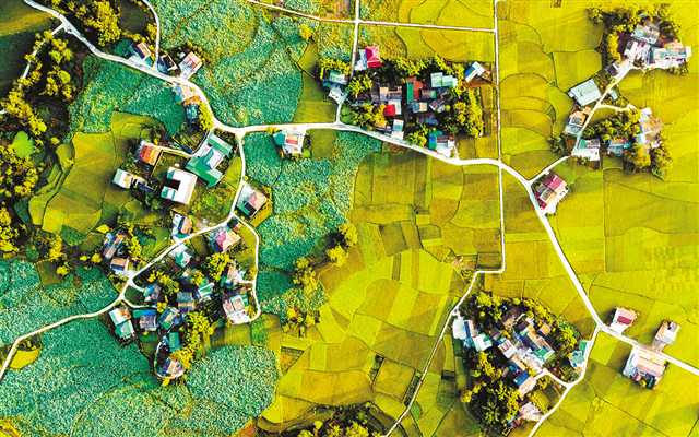 梁山街道清都村實施了高標準農(nóng)田建設(shè)。金秋時節(jié),村里碧綠的荷塘、金黃的稻田以及錯落的民居在清晨陽光照耀下,繪出一幅秋日豐收圖(二○一八年八月三日無人機拍攝)。高小華 攝
