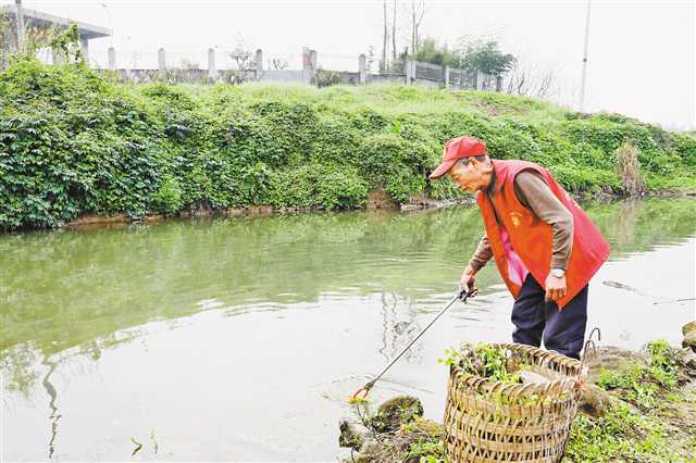 陽春三月,春寒料峭、乍暖還寒。3月11日,早上7點過,梁灘河薄霧繚繞,土主鎮(zhèn)力量村夏家壩社的巡河護衛(wèi)隊員王德剛便拿起清漂工具,推著自行車踏出家門,開始了一天的巡河和河道垃圾清理工作。