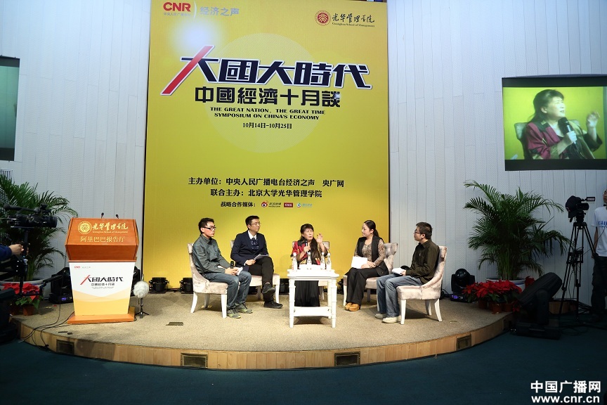 央廣網(wǎng)財(cái)經(jīng)北京10月15日消息(經(jīng)濟(jì)之聲記者柯成韻 劉中琪)由中央人民廣播電臺經(jīng)濟(jì)之聲、央廣網(wǎng)主辦的《大國大時(shí)代——中國經(jīng)濟(jì)十月談》系列時(shí)事報(bào)告會,10月14日在北京大學(xué)啟動。第一場報(bào)告會“改革談—大國經(jīng)濟(jì)該從哪里升級”由著名經(jīng)濟(jì)學(xué)家厲以寧教授、中國銀河證券首席總裁顧問左小蕾主講。
