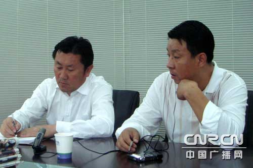 圖為中央臺記者張四清采訪獐子島漁業(yè)集團(tuán)董事長吳厚剛