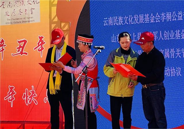 發(fā)布會(huì)上,昆明重陽(yáng)老年病醫(yī)院與大理朵祜堂健康管理有限公司簽署《昆明重陽(yáng)老年病醫(yī)院托管意向協(xié)議》;山東省濟(jì)寧市汶上縣退役軍人創(chuàng)業(yè)基金協(xié)會(huì)與云南民族文化發(fā)展基金會(huì)李桐公益專項(xiàng)基金簽署《關(guān)于開(kāi)展退役軍人及家屬骨關(guān)節(jié)疾病慈善公益關(guān)愛(ài)活動(dòng)協(xié)議》;國(guó)家發(fā)改委中國(guó)投資協(xié)會(huì)農(nóng)村農(nóng)業(yè)投資專業(yè)委員會(huì)與云南民族文化發(fā)展基金會(huì)簽署《朵祜村神醫(yī)谷民族醫(yī)藥產(chǎn)業(yè)助力鄉(xiāng)村振興公益項(xiàng)目研究課題協(xié)議》。