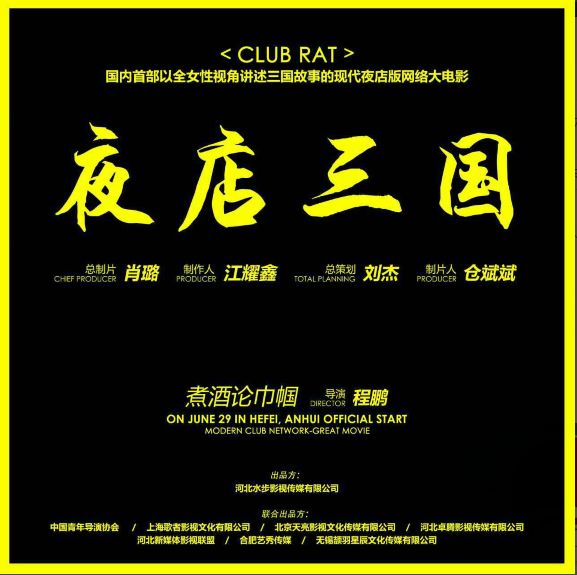 由河北水步影視傳媒有限公司出品,中國(guó)青年導(dǎo)演協(xié)會(huì)、上海歌者影視文化有限公司、北京天亮影視文化傳媒有限公司、河北卓騰影視傳媒有限公司、河北新媒體影視聯(lián)盟聯(lián)、合肥藝秀傳媒、無錫頡羽星辰文化傳媒有限公司、河北中鼎圣視文化傳播有限公司聯(lián)合出品,國(guó)內(nèi)首部以全女性視角講述三國(guó)故事的現(xiàn)代夜店版網(wǎng)絡(luò)大電影《夜店三國(guó)》,7月10日在安徽合肥正式殺青?傊破诵よ,擔(dān)任該劇的制片人,其以影視新人的角色進(jìn)入影視行來以來,更是連連重磅出手,策劃打造了《月亮的后裔》等多部網(wǎng)絡(luò)電影,目前其他幾部正在緊張后期中。