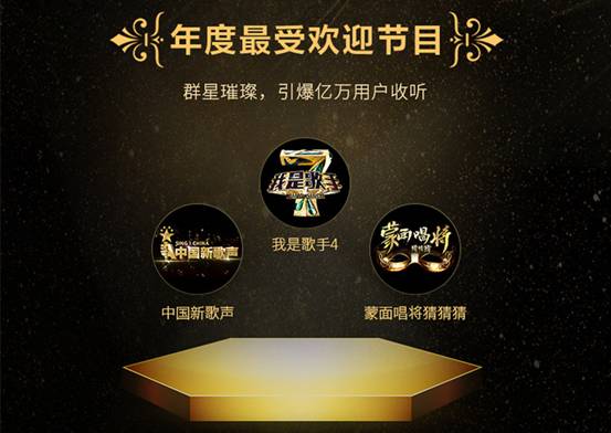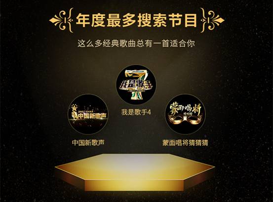 【年度最受歡迎/最多搜索節(jié)目:《我是歌手4》、《中國(guó)新歌聲》、《蒙面唱將猜猜猜》】
