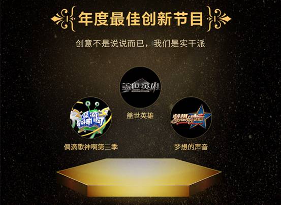 【年度最佳創(chuàng)新節(jié)目:《蓋世英雄》、《偶滴歌神啊》第三季、《夢(mèng)想的聲音》】