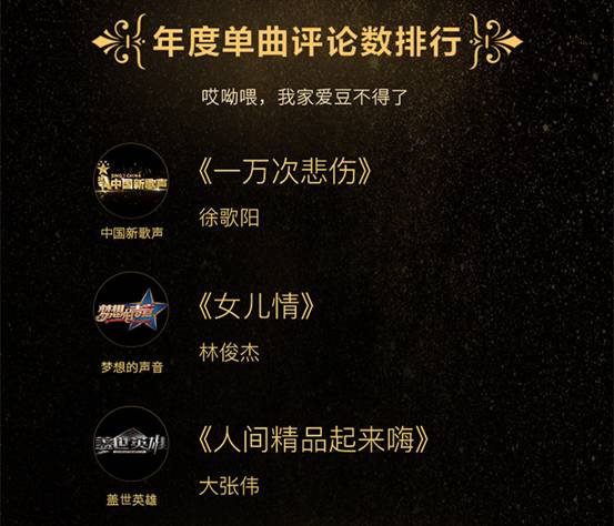 【年度單曲評(píng)論數(shù)排行:《一萬(wàn)次悲傷》、《女兒情》、《人間精品起來(lái)嗨》】