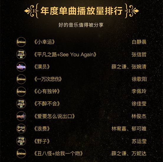 【年度單曲播放量排行:《小幸運(yùn)》、《平凡之路+See You Again》、《演員》】