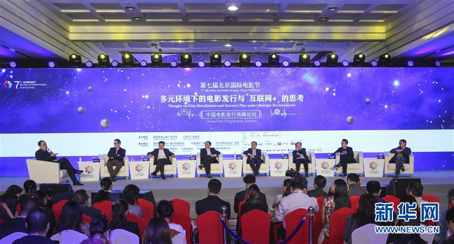 4月18日拍攝的論壇現(xiàn)場(chǎng)。當(dāng)日,北京國(guó)際電影節(jié)在北京國(guó)際飯店舉辦“多元環(huán)境下的電影發(fā)行與互聯(lián)網(wǎng)+的思考”中國(guó)電影發(fā)行高峰論壇。新華社記者 殷剛 攝