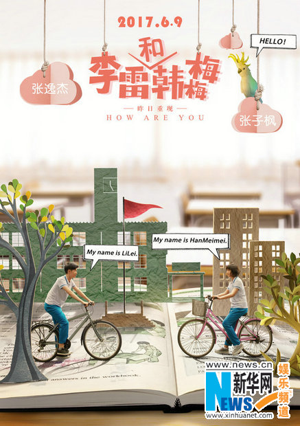 5月8日,國民IP電影《李雷和韓梅梅》發(fā)布了先導(dǎo)版預(yù)告片和海報(bào),并正式宣布定檔2017年6月9日。該片依托英語教科書中的經(jīng)典CP“李雷和韓梅梅“人物原型,保留“鸚鵡Polly”“Miss Gao”、“Jim”、“Uncle Wang “等“回憶殺”代表元素,復(fù)盤近2億人的青春記憶;而兩位95后“老戲骨”張子楓與張逸杰的全新演繹,將一段 “體育女王”與“學(xué)霸男神”的青春小曖昧故事注入更多“正當(dāng)下”的青春氣息,呈現(xiàn)真正呼應(yīng)80、90、00后三代人共同的“李雷和韓梅梅”國民CP。