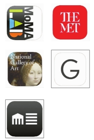 國(guó)外美術(shù)館的移動(dòng)客戶端標(biāo)識(shí),依次為:紐約現(xiàn)代藝術(shù)博物館、紐約大都會(huì)藝術(shù)博物館、華盛頓國(guó)家畫廊、紐約古根海姆博物館、克利夫蘭藝術(shù)博物館。資料圖片