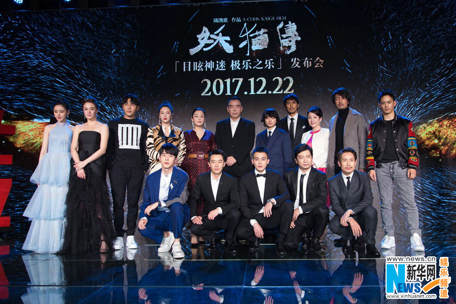 由陳凱歌導演的賀歲奇幻鉅制《妖貓傳》,于12月17日舉行“目眩神迷 極樂之樂”全球首映發(fā)布會,導演陳凱歌,制片人陳紅攜主演黃軒、染谷將太、張雨綺、秦昊、張榕容、張魯一、劉昊然、歐豪、阿部寬、松坂慶子、田雨、成泰燊、李淳,特別出演張?zhí)鞇壅鸷沉料啵涨褒嫶箨嚾莨餐_啟2017最受期待的盛唐奇觀。