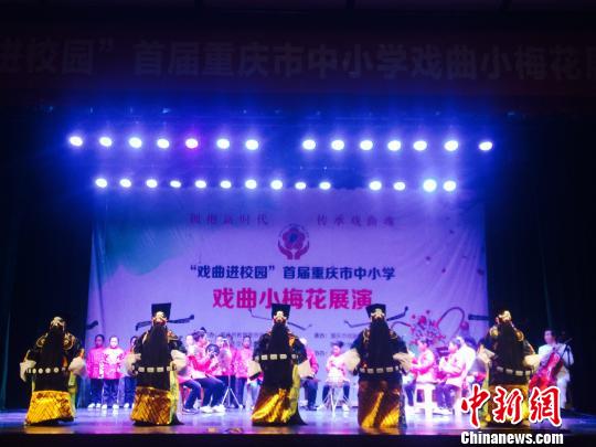 圖為“戲曲進(jìn)校園”首屆重慶市中小學(xué)戲曲小梅花展演決賽現(xiàn)場(chǎng)!$娦 攝