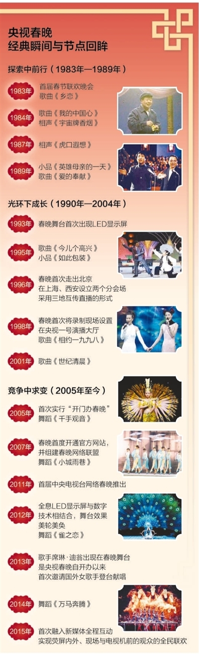 “春節(jié)聯(lián)歡晚會”這頓電視“年夜飯”即將迎來第三十五個年頭,除夕夜看央視春晚早已成為中國人過年的新民俗。明星上春晚代表其在業(yè)界的地位,新人在春晚上露臉則是“一夜成名”的“捷徑”,觀眾樂于在春節(jié)過后點評春晚節(jié)目……春晚不僅是一方舉國歡慶的民俗舞臺,更是受到全民關(guān)注的國家文化工程,是新時期以來少有的用普通百姓喜聞樂見的方式形塑主流價值觀的文化空間。
