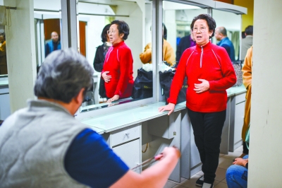 有人在舞臺(tái)上開心地接受觀眾如潮般的掌聲,也有人滿懷遺憾地離開。著名梅派表演藝術(shù)家李玉芙,特別看重這次演出。但80歲的她因?yàn)榻虒W(xué)工作太累,這幾天失聲了。為了參加演出她昨天就去醫(yī)院打了激素針,因?yàn)闆]有見效,演出前兩小時(shí)又打了一次針。直到演出開始了,她還在后臺(tái)跟琴師合練,做最后的努力。最終還是因?yàn)樯ぷ訉?shí)在沒法兒堅(jiān)持,只能在眾人的勸說下,滿懷歉意離開了劇場(chǎng)。