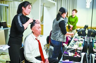 89歲的李春仁在后臺(tái)準(zhǔn)備。