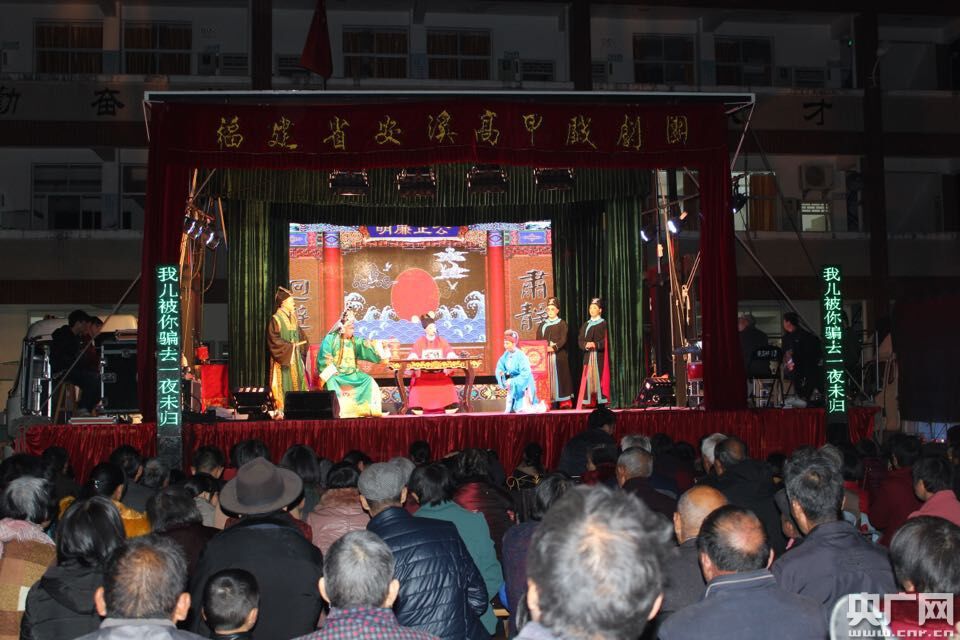 昨日(6日)晚,福建安溪高甲戲劇團紅色文藝輕騎兵來到這里演出,將春節(jié)后日漸寂靜的偏遠(yuǎn)山村裝扮成了熱鬧歡樂的幸福樂園,廣大群眾在家門口就享受到了豐富的“文化大餐”。