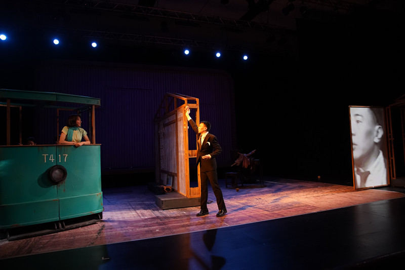 前輩藝術(shù)家們的老影像、演員們鮮活的現(xiàn)場表演、現(xiàn)場實時拍攝實時投影等敘事線索,都被黃盈當作素材,用蒙太奇的概念一起并置在舞臺上。演員現(xiàn)場的表演,除了用現(xiàn)代手法重現(xiàn)原故事線,還需要有時空交錯的跳出,回看八十三年前發(fā)生了什么,然后做出討論。這是任何年輕人都能超越時代,從精神實質(zhì)上共通共鳴的部分,是一次穿梭于八十三年間的,兩代年輕人的隔空對話。