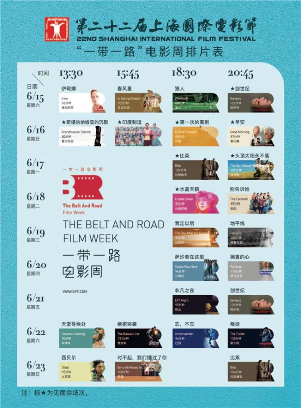 從2015年專設“絲綢之路”展映單元以來,上海國際電影節(jié)積極響應“一帶一路”倡議,每年創(chuàng)新升級,擴大與“一帶一路”沿線國家電影人的交流和交往。去年電影節(jié)設立“一帶一路”電影周,并于電影節(jié)期間成立了由29個國家31個電影節(jié)機構(gòu)組成的“一帶一路”電影節(jié)聯(lián)盟。今年,聯(lián)盟又將迎來7位新成員,“一帶一路”電影周也迎來新的一年。