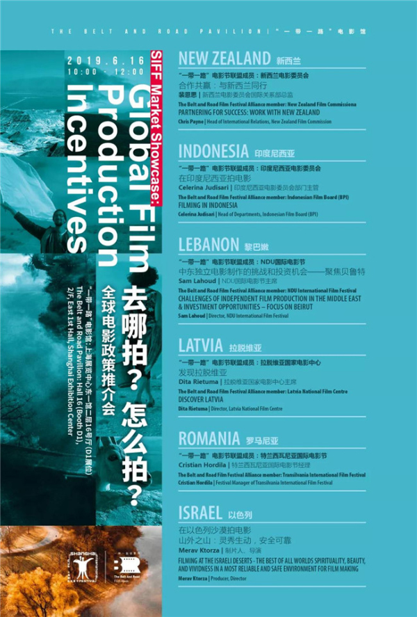 “去哪拍?怎么拍?- 全球電影政策推介會”將由來自新西蘭、印度尼西亞、拉脫維亞、黎巴嫩、羅馬尼亞、以色列六國的電影機構(gòu)將在6月16日上午10點到12點向市場來賓介紹其本國的合拍片政策、拍攝基地和拍攝優(yōu)惠政策。