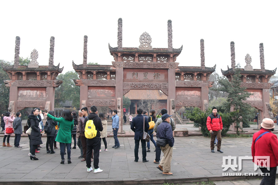 德陽網絡媒體行的記者來到德陽文廟進行參觀(央廣網記者 楊曉凡攝)